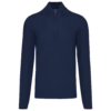 50% coton / 50% acrylique (jauge 12). Coupe ajustée. Col cheminée double épaisseur et fermeture avec zip métal fumé. Bande de propreté à l’encolure.